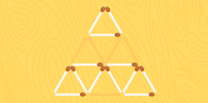 Уберите 5 спичек так, чтобы осталось только 5 равных треугольников.